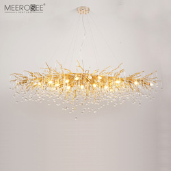 ثريا كريستالية فاخرة حديثة من MEEROSEE ، فرع شجرة نحاسية ذهبية ، مصباح معلق بيضاوي لمشاريع الفنادق