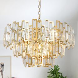 Meerosee lusso K9 lampadario di cristallo decorazione per la casa apparecchi di illuminazione per soffitti alti con metallo dorato cristallo chiaro AR016