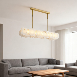 MEEROSEE Alabaster ada işık altın pirinç tavan işık asılı mermer Alabaster uzun Alabaster Oval işık 400K3593